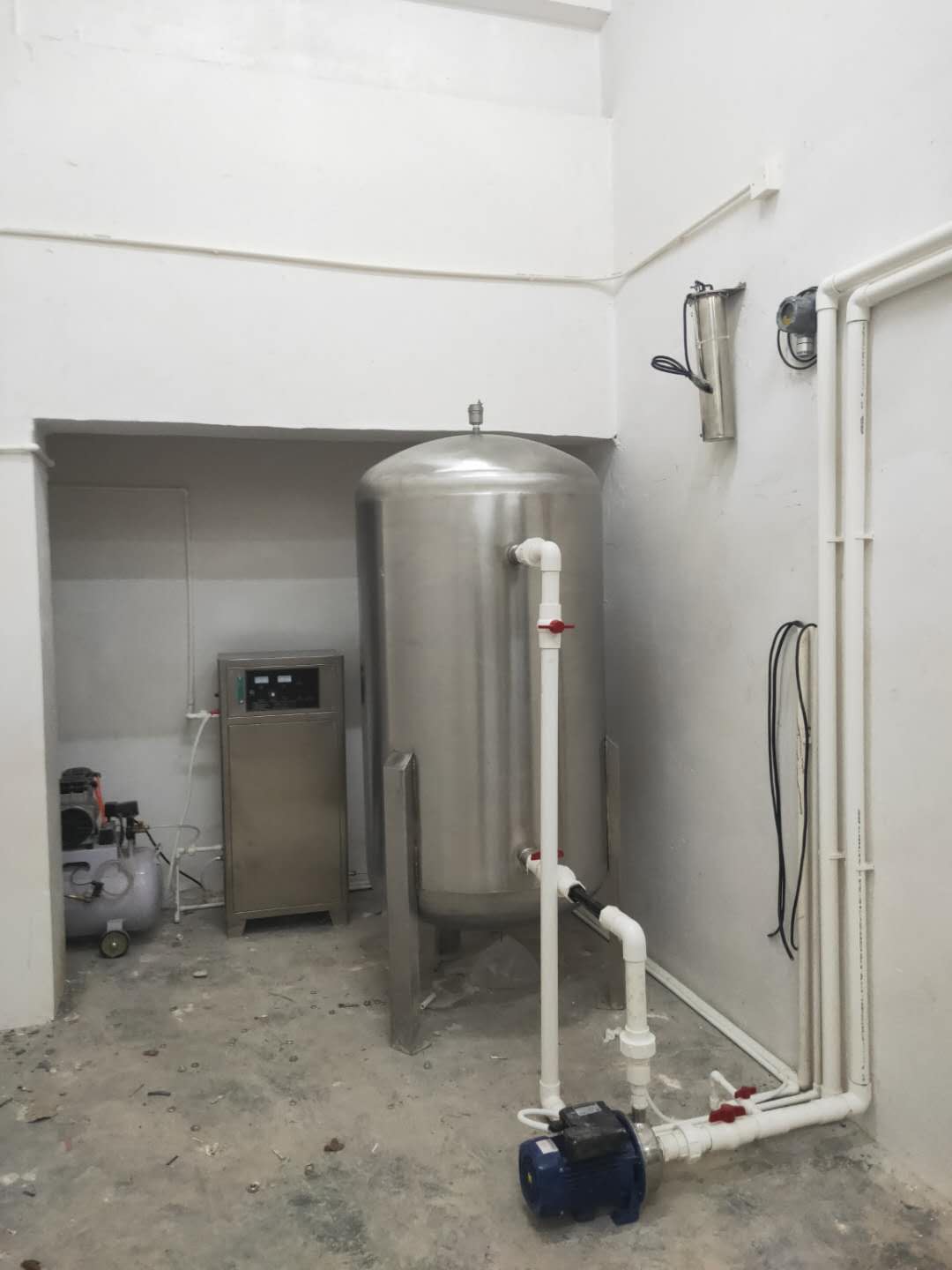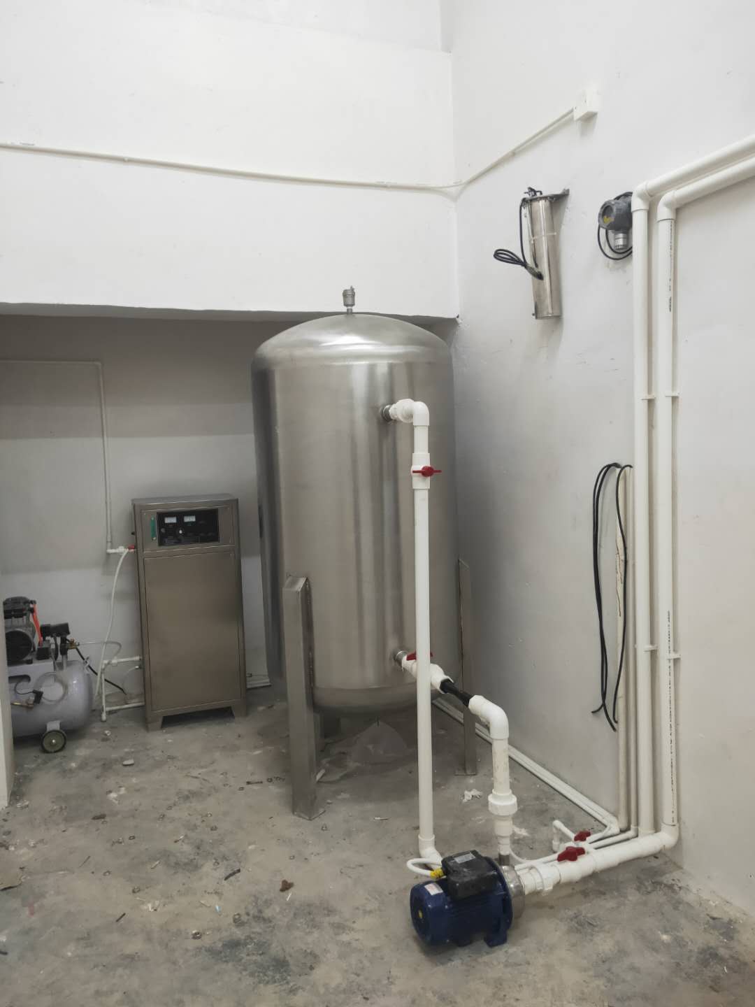 配置:雙機頭空壓機3000瓦,1個水泵 1個φ900*2100反應罐,600W尾氣處理器1個,1個臭氧檢測儀